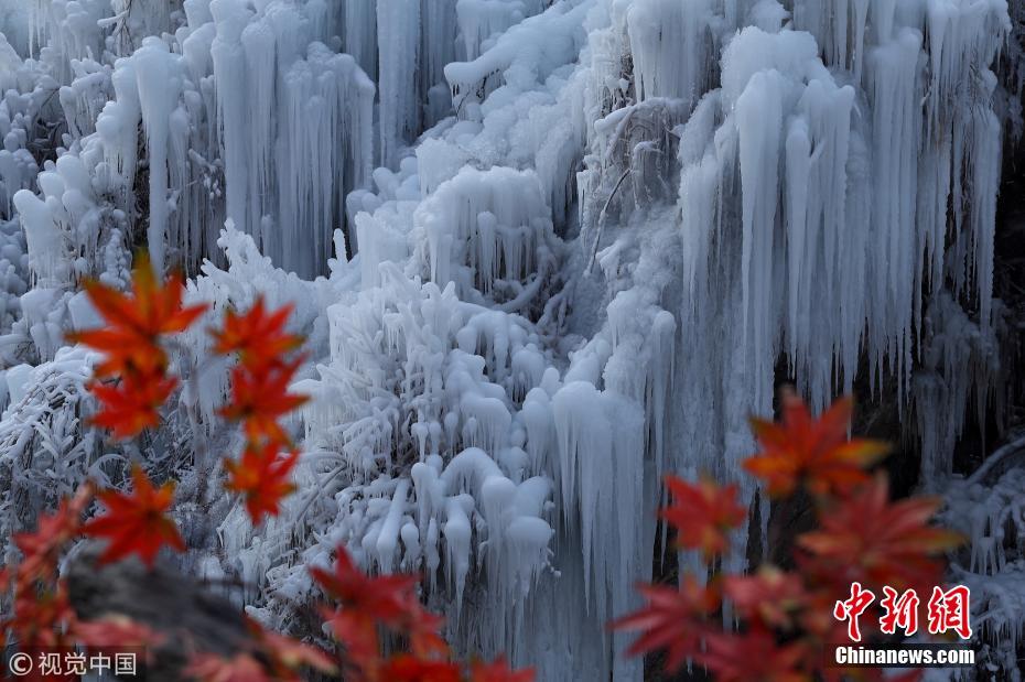 12月14日,北京门头沟区妙峰山镇多处冰瀑景观进入最佳观赏期,炭厂村神泉峡景区大面积人工冰瀑形成美丽的冰瀑景观,预计12月19日正式向游客开放。侯继庆 摄 图片来源:视觉中国