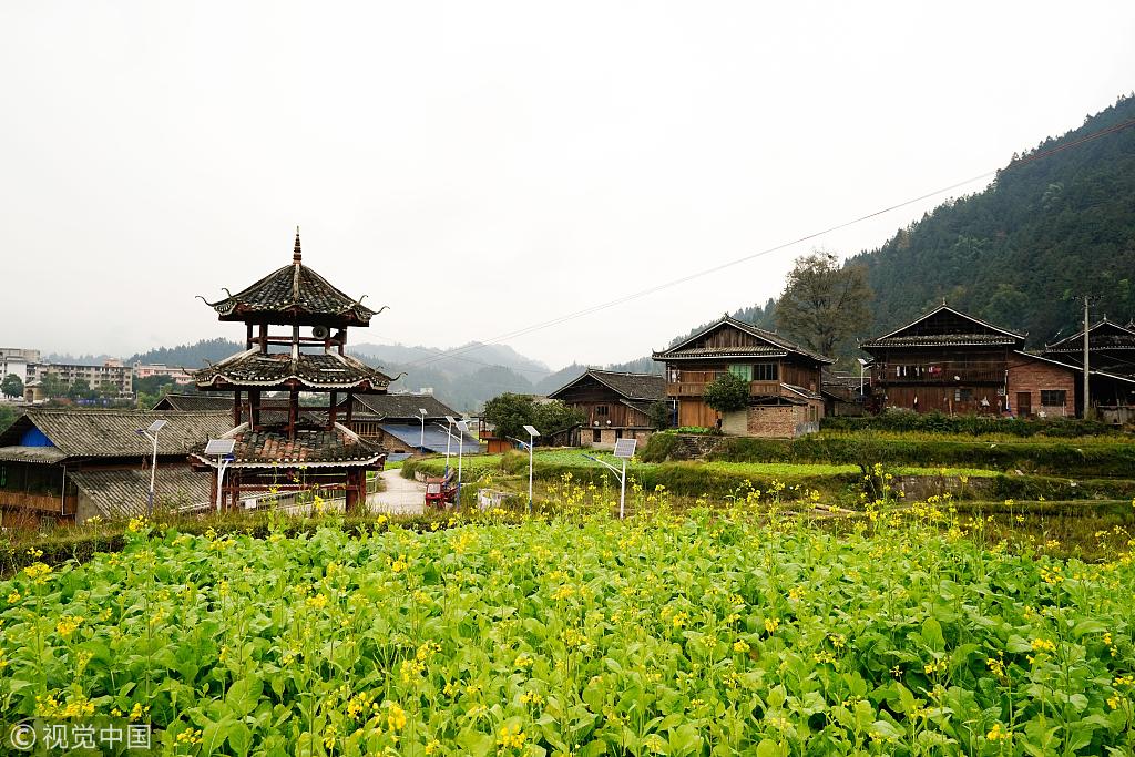 贵州黔东南 榕江侗寨油菜花开添暖意