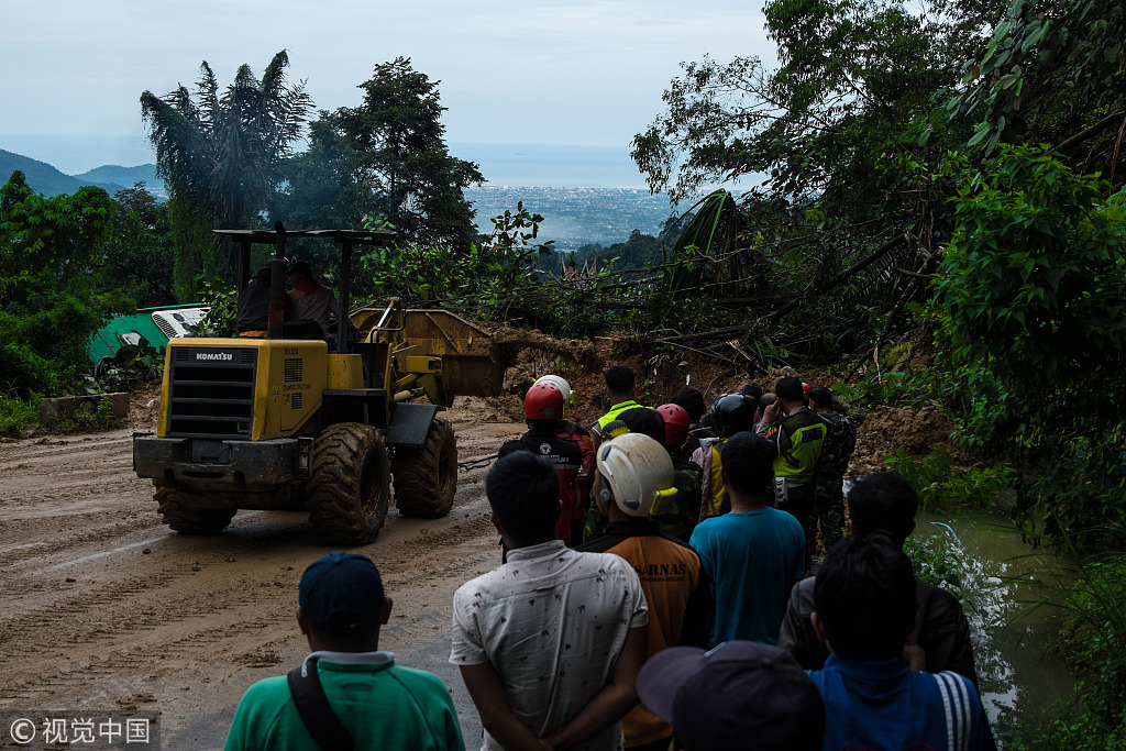 当地时间2018年12月14日,印尼西苏门答腊,暴雨引发滑坡,一辆客车被掩埋。