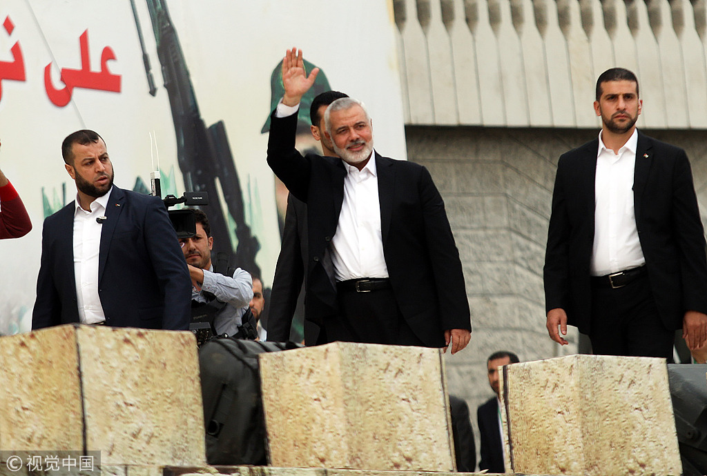 当地时间2018年12月16日,加沙市,巴勒斯坦伊斯兰抵抗运动(哈马斯)政治局领导人哈尼亚16日在加沙地带说,哈马斯愿为恢复巴勒斯坦统一作出最大努力。