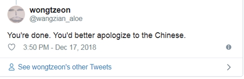 网友@wongtzeon:你够了,你最好是向中国人道歉。