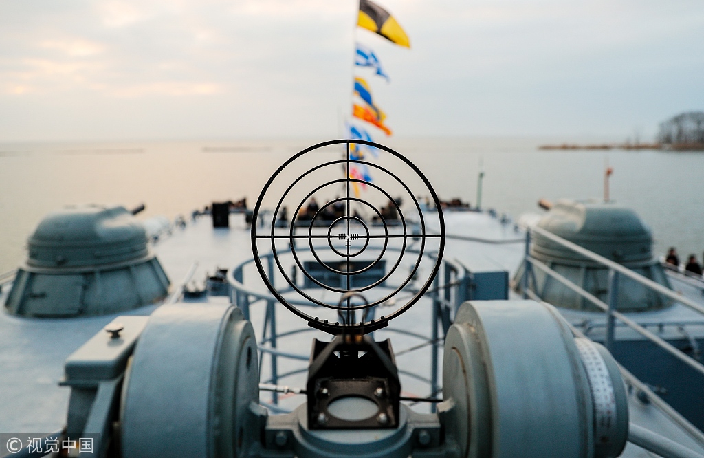 当地时间2018年12月17日,俄罗斯加里宁格勒地区,俄罗斯一艘“梅季希”导弹护卫舰(Mytishchi missile corvette)在波罗的斯克海军基地加入波罗的海舰队。
