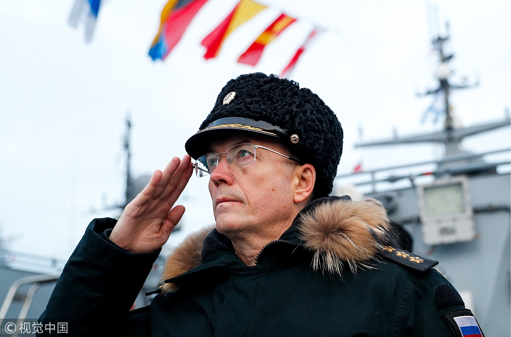当地时间2018年12月17日,俄罗斯加里宁格勒地区,俄罗斯一艘“梅季希”导弹护卫舰(Mytishchi missile corvette)在波罗的斯克海军基地加入波罗的海舰队。