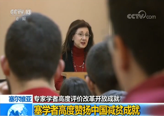 贝尔格莱德大学政治学院教授 米特罗维奇:(改革开放)使7.4亿人脱离贫困,这是非凡的成就,是对全人类的重大贡献。因为中国是个非常大的国家,中国取得了在我们所了解的,现代人类社会历史上,史无前例的成就。鉴于中国的发展牵动着全球各领域,金融、贸易、投资、生产、治理全球污染等等方面,这就是为什么我说,中国继续扩大开放不只是对自身有利,也对整个世界有利。