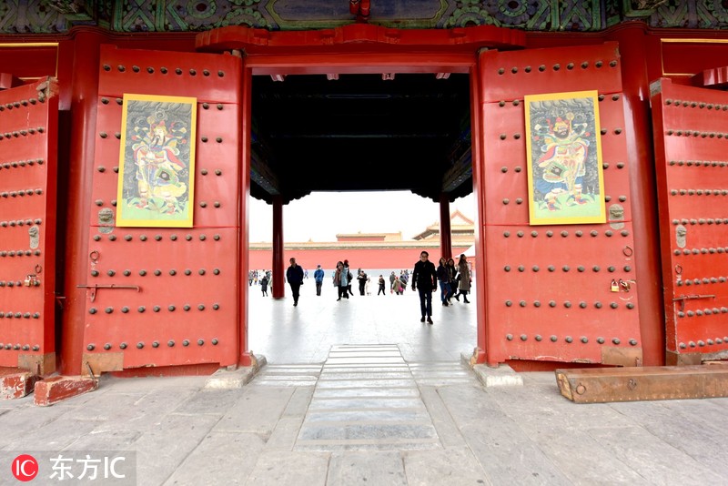 2018年12月22日,为了迎接即将到来的春节,故宫博物院将于2019年1月6日起举办“贺岁迎祥——紫禁城里过大年”展览。现在已经开始宫殿门口悬挂寓意吉祥的春联、门神让观众感到中国浓浓的年味。