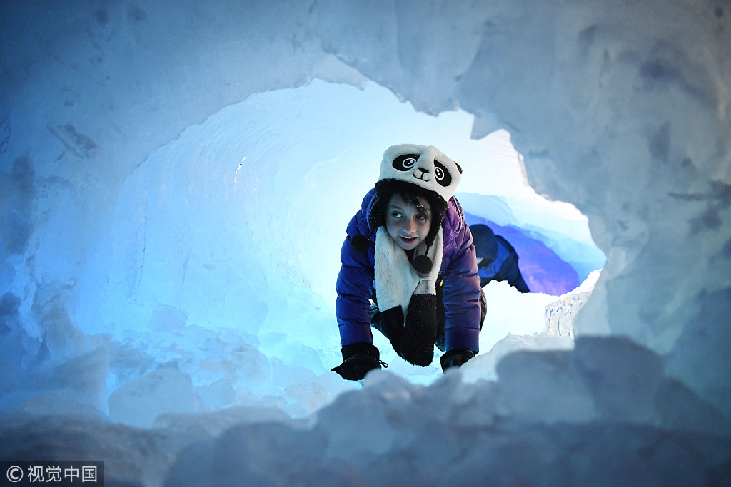 美国科罗拉多州现冰雪城堡 儿童置身其中如探索“童话王国”