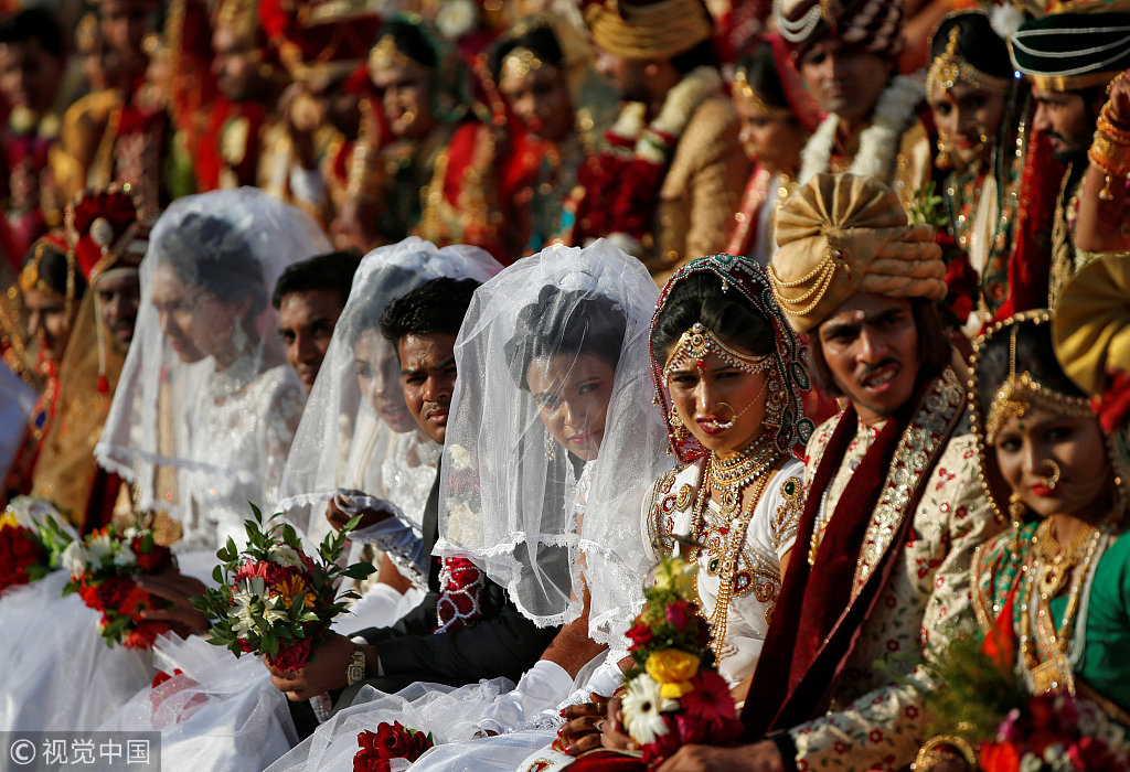 印度261对新人举行集体婚礼 新娘“排队结婚”走神打哈欠
