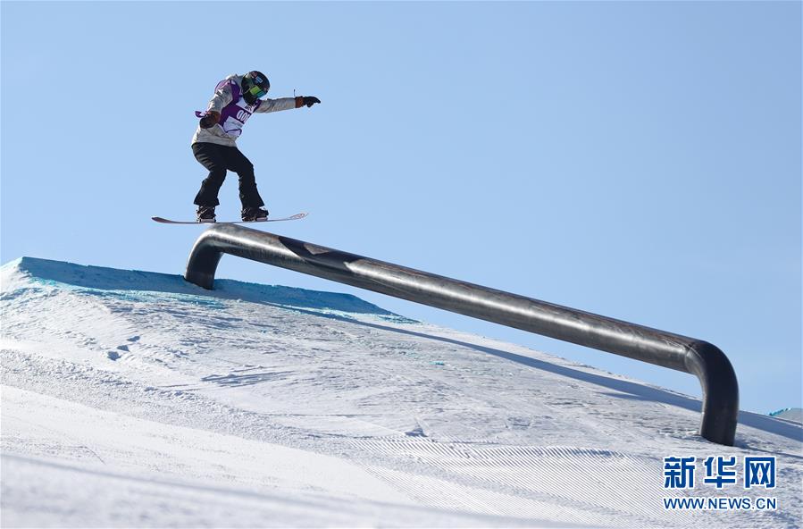 图为2018年12月21日,在河北崇礼云顶滑雪场举行的2018-2019国际雪联单板滑雪坡面障碍技巧世界杯女子组决赛中,勒菲弗·露西尔获得季军。 新华社记者 杨世尧 摄