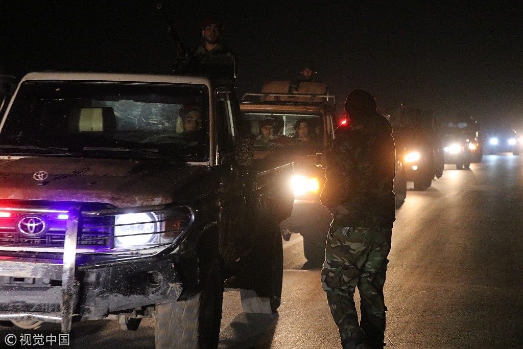 当地时间2018年12月24日,叙利亚Azez,叙反对派武装叙利亚自由军部队的陆战车辆和装甲车开往叙利亚曼比季前线。