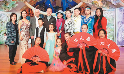 图为张汉华(后排左五)在新西兰和参与“舞动中华”文艺汇演的演员和工作人员合影。 资料图片