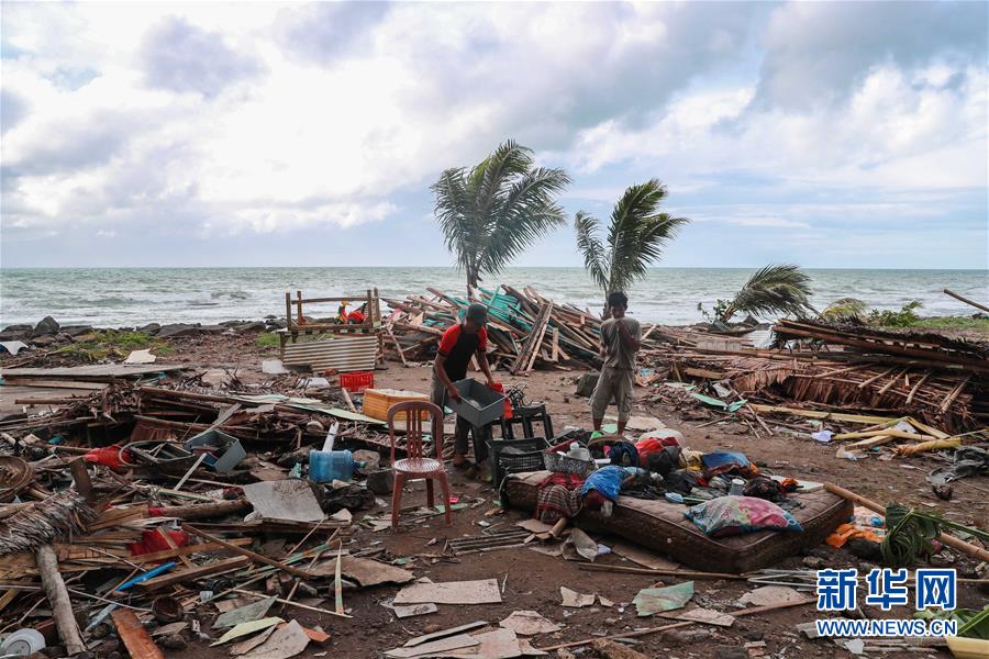 12月24日,受灾民众在印尼万丹省海啸灾区进行清理工作。 印度尼西亚抗灾署发言人24日说,印尼西部巽他海峡海啸死亡人数已经上升至373人。 新华社记者 张可任 摄