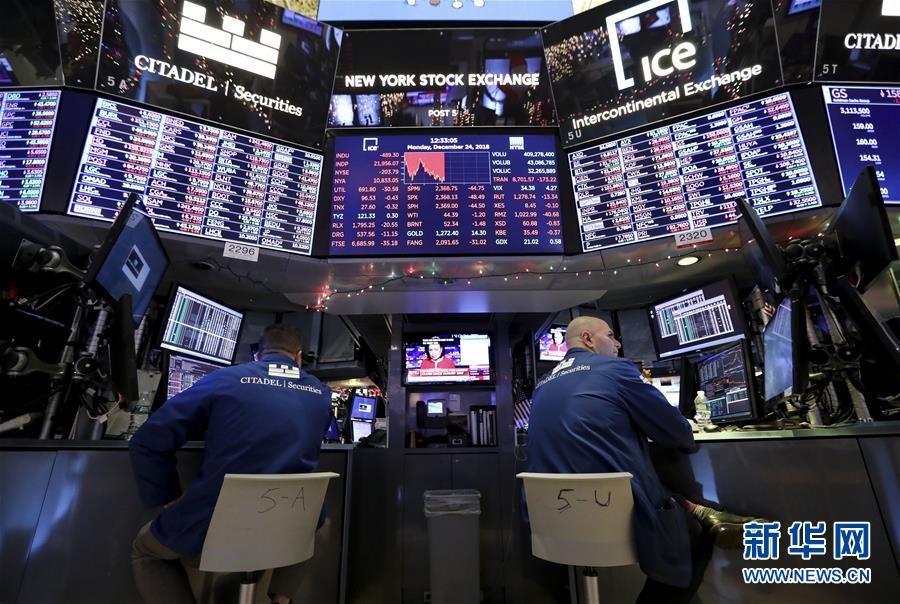 12月24日,交易员在美国纽约证券交易所工作。 纽约股市三大股指24日收盘下跌。新华社记者王迎摄