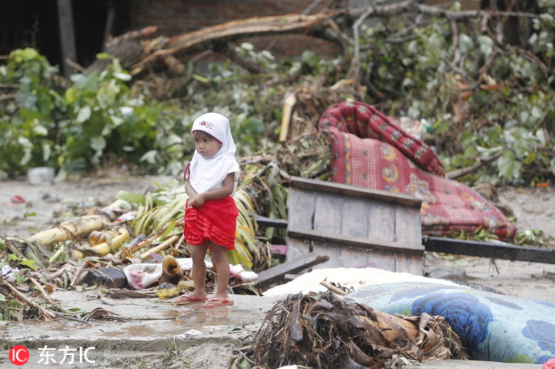 印尼海啸致数百栋房屋被毁 村庄沦为废墟满目疮痍