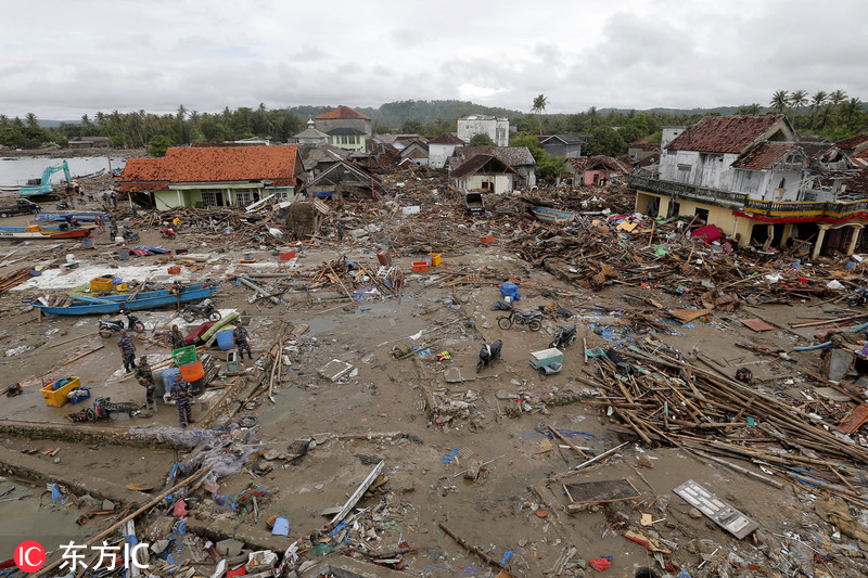 印尼海啸致数百栋房屋被毁 村庄沦为废墟满目疮痍