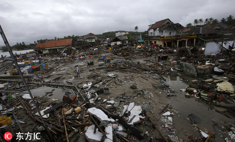 印尼海啸致数百栋房屋被毁 村庄沦为废墟满目疮痍