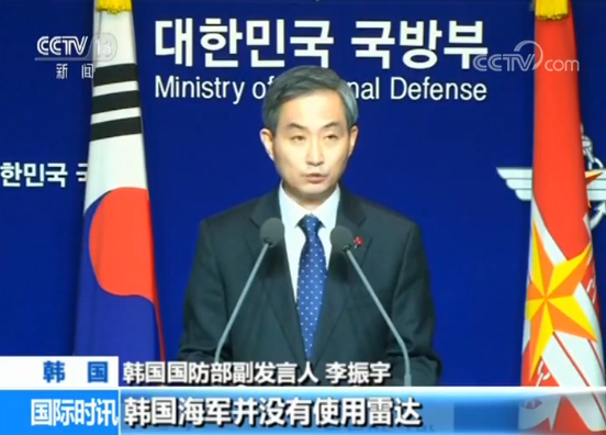 韩国国防部副发言人 李振宇:韩国海军并没有使用雷达,对日本侦察机进行故意跟踪。
