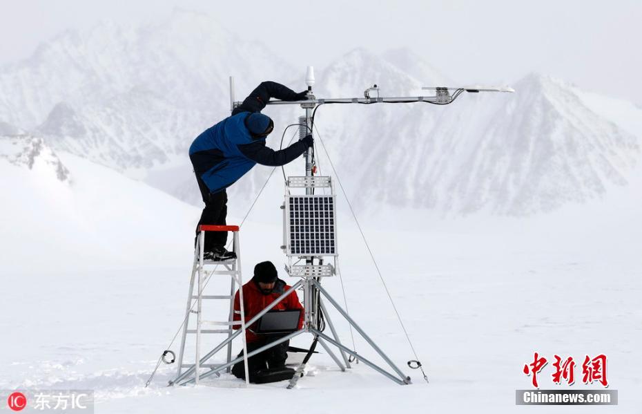 智利冰川学家Ricardo Jana和Francisco Aguirre去年用南极冰雪的样本分析气候状况,并运用差分全球定位系统查看冰川的移动位置。他们的工作让目前我们使用的全球卫星定位系统从15米的误差缩小到约10厘米。图为智利科学家Ricardo Jana 和Francisco Aguirre在一个自动气象站作业。