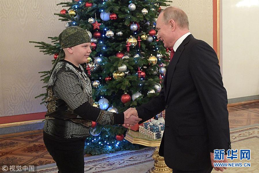 当地时间2018年12月27日,俄罗斯莫斯科,俄罗斯总统普京接见10岁小男孩Kolya Kuznetsov。12月5日,普京出席了俄志愿者国际论坛并参加了满足重病患儿愿望的“梦想与我”慈善项目,承诺帮助该项目中的5名参加者完成梦想,而Kolya Kuznetsov就是其中一名,他的梦想是和普京握手。(图片来源:视觉中国)