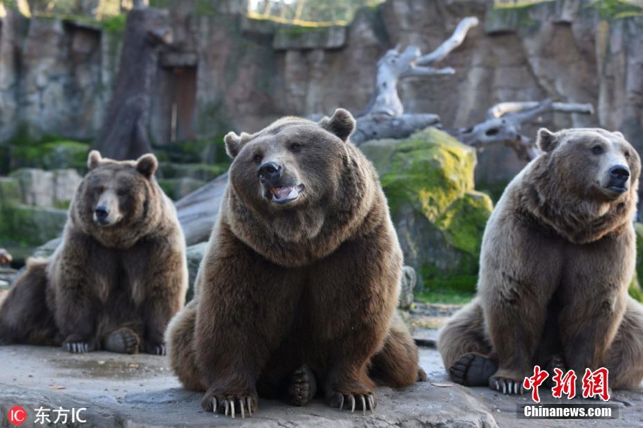 当地时间2018年12月27日,西班牙马德里,马德里动物园的棕熊们焦急等饭吃,吃货小模样萌爆了。 图片来源:东方IC