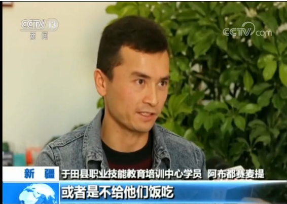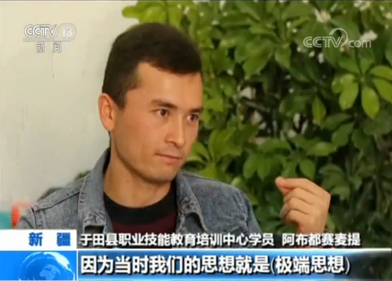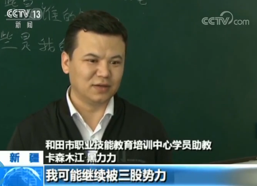 于田县职业技能教育培训中心学员 木塔里普:当时他给我们说,有条件的话我们把“卡菲尔”(异教徒)们,一定要杀他们,消灭他们。政府给我们盖的安居房还有马路都是"非穆斯林"(建的),我们应该不住在那个安居房,应该必须要做礼拜,吉哈德(“圣战”),还有学经,没有(不要)去学校。