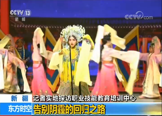 上面是伽师县职业技能教育培训中心一台晚会的演出现场,饰演杨贵妃的实际上是个帅气的小伙子,名叫阿布都拉·阿布都热依木。