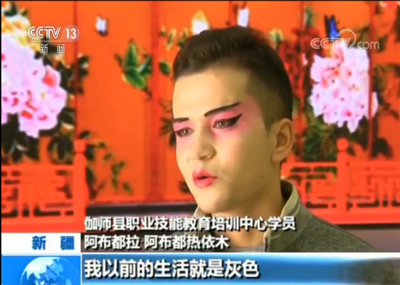 伽师县职业技能教育培训中心学员 阿布都拉·阿布都热依木:大家现在都羡慕我,因为我现在我们文工队里面唱歌唱得最好的一个人,京剧也是唱得最好的一个人。所以我同期的同学们他们都羡慕我,他们现在都喜欢我,真的。