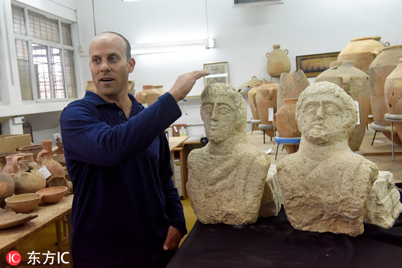 当地时间2018年12月30日,以色列,以色列北部伯珊城(Beth Shean)出土了一对大约1700年前的半身雕塑。据以色列文物管理局消息,这对雕塑可追溯至罗马晚期,由石灰岩雕刻而成,人物面部表情生动,服饰和发型特征鲜明。