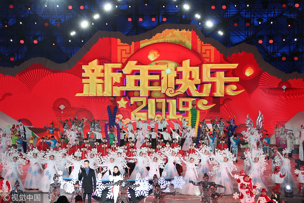 2019年1月1日,“你好,2019!”北京新年倒计时活动亮相奥林匹克公园,五千多名各界代表共同迎新年。图为活动现场。