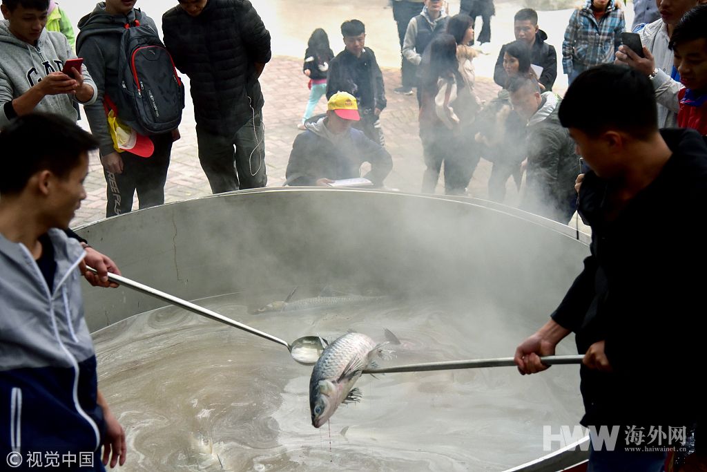 连年有余!广东3000斤鱼煮5吨鱼汤 万名游客品尝