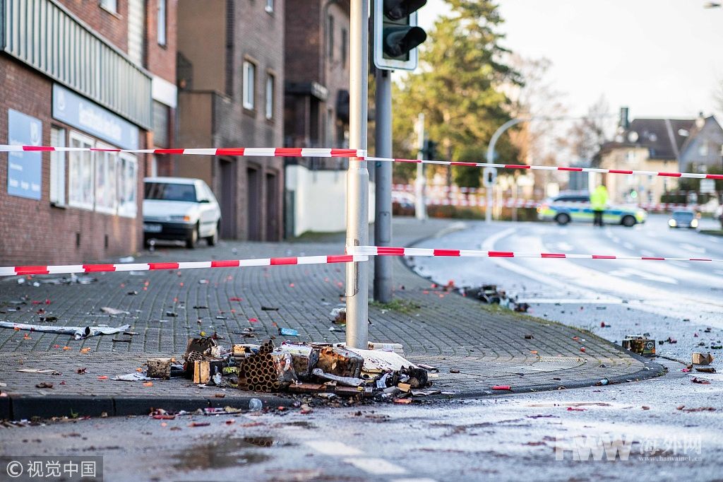 当地时间2019年1月1日,德国博特罗普,警方封锁现场。新年前夕,德国西北部城市波特洛普发生汽车袭击人群事件。