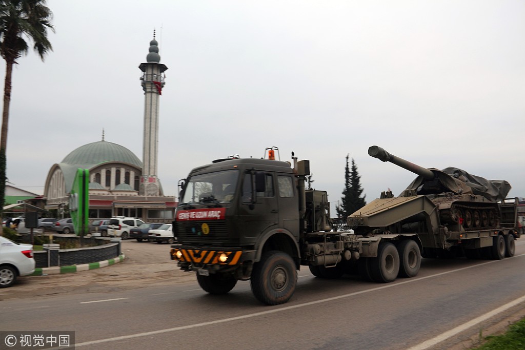 当地时间2019年1月2日,土耳其哈塔伊,土耳其武装军队向土叙边境城市加济安泰普增派部队。