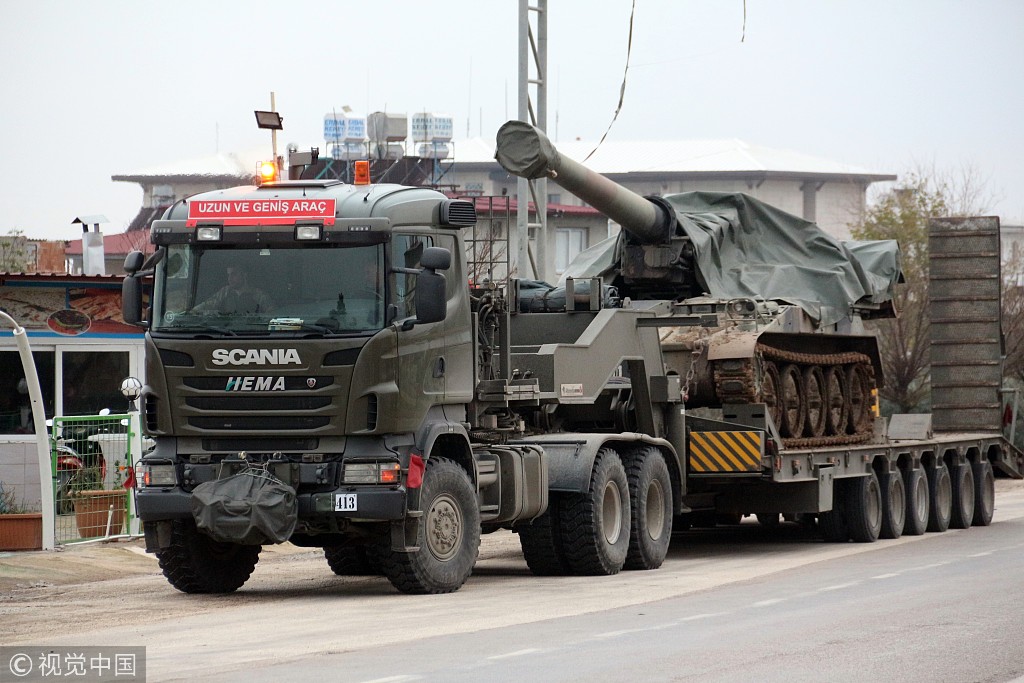 当地时间2019年1月2日,土耳其哈塔伊,土耳其武装军队向土叙边境城市加济安泰普增派部队。