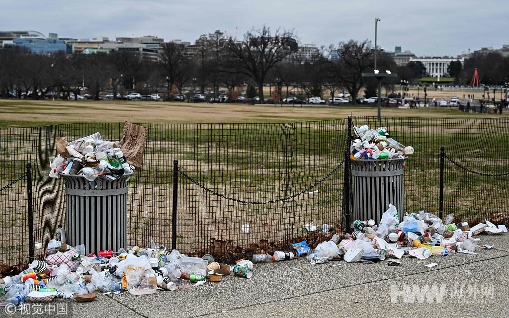 当地时间2019年1月2日,美国华盛顿,联邦政府部分关闭已进入第12天,华盛顿国家广场上垃圾无人清理。