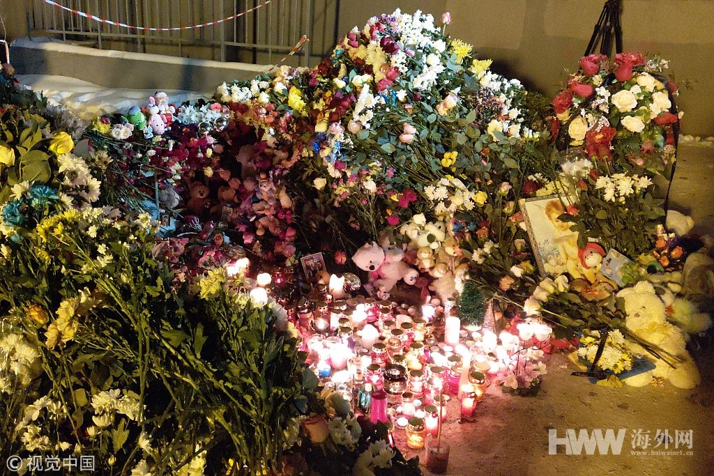 当地时间2019年1月2日,俄罗斯马格尼托哥尔斯克,民众悼念居民楼爆炸事故遇难者。