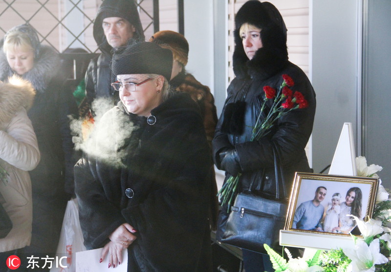 当地时间2019年1月4日,俄罗斯马格尼托戈尔斯克市,俄罗斯居民楼爆炸案遇难者Igor Kramarenko,Milana Kramarenko以及他们的女儿Anastasia的葬礼举行。据俄罗斯媒体报道,俄紧急情况部门负责人向外界表示,截止当地时间3号19时,马格尼托哥尔斯克居民楼坍塌事故的救援搜索工作已结束,事故确认遇难者人数为39人。