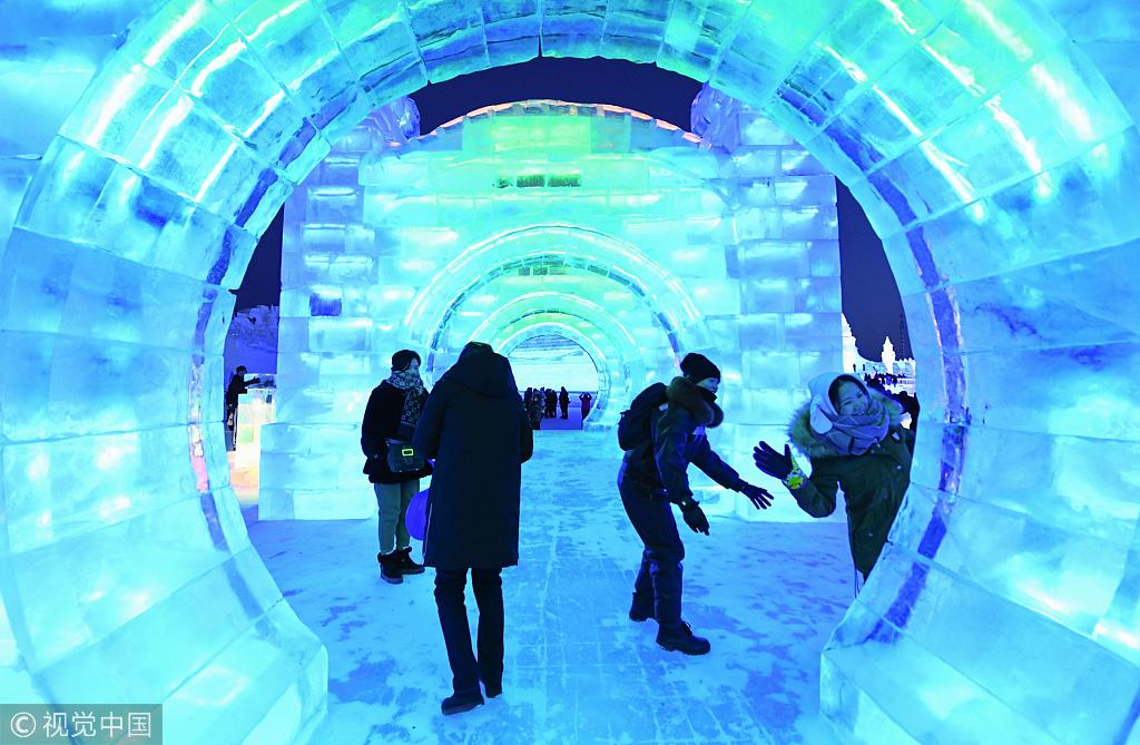 2019年1月5日,黑龙江省哈尔滨,哈尔滨国际冰雪节开幕。