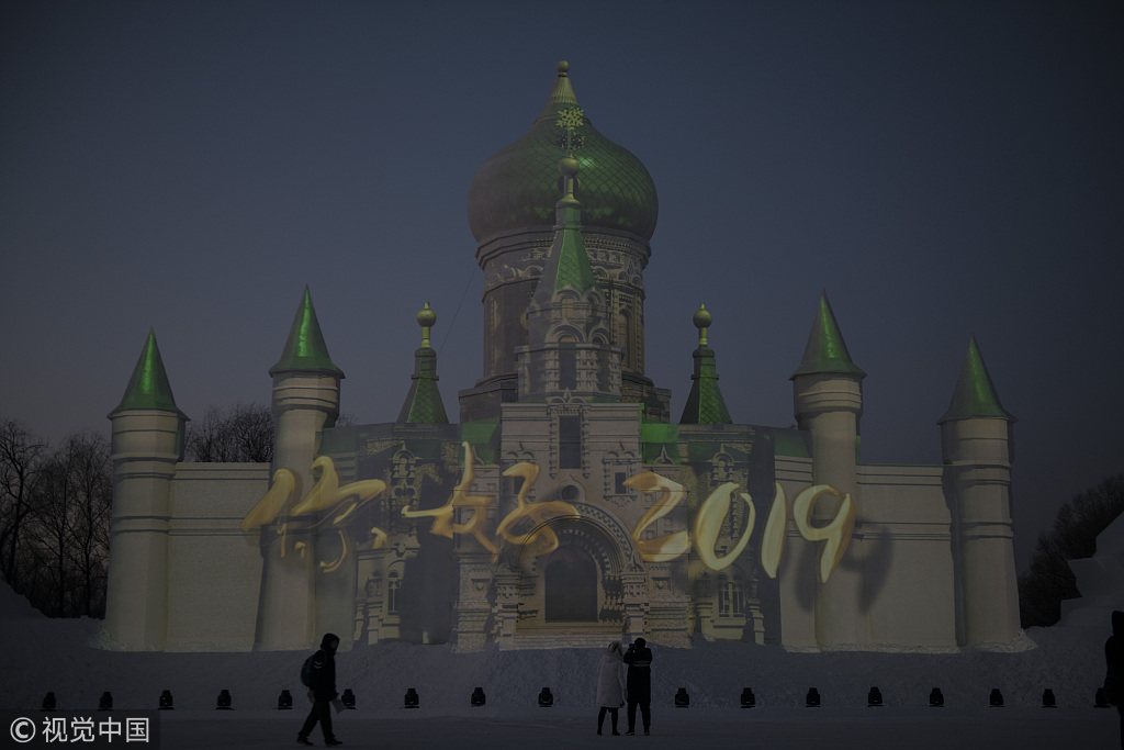 2019年1月5日,黑龙江省哈尔滨,哈尔滨国际冰雪节开幕。