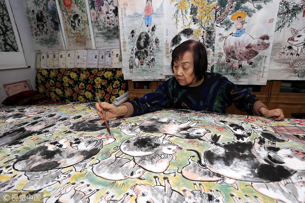 河北女画家创作《百猪图》 “十二生肖百相图”系列圆满完成