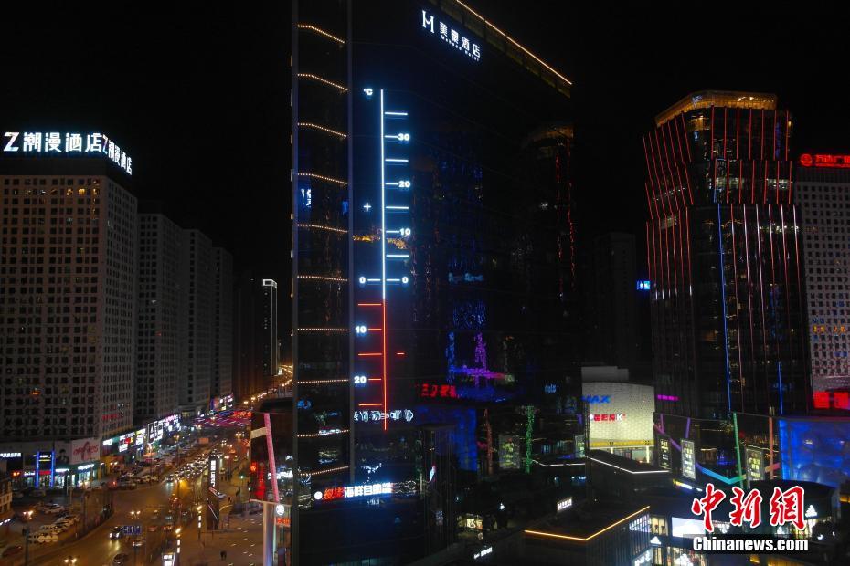 1月6日,西宁市海湖新区,位于一座大厦外部的巨型温度计引人注目。据了解,该温度计高达53米,利用户外温感技术实时记录室外温度。 中新社记者 李培源 摄