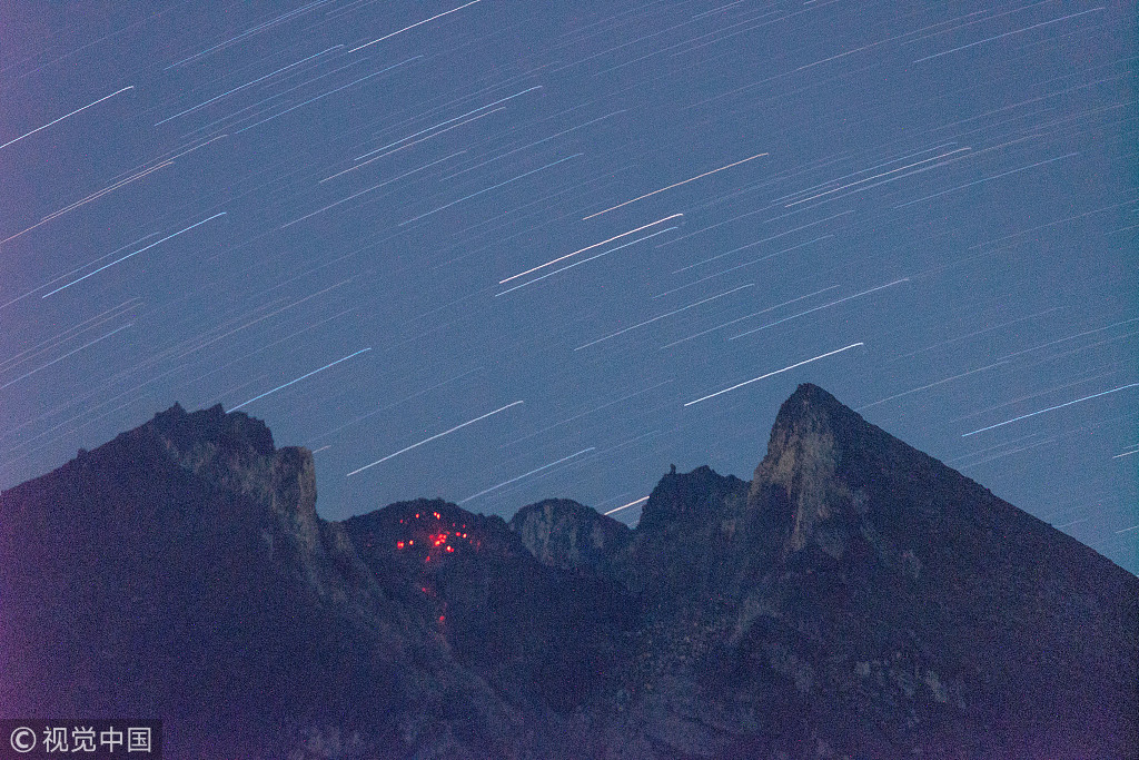 印尼默拉皮火山再度喷发 炙热熔岩喷涌而出