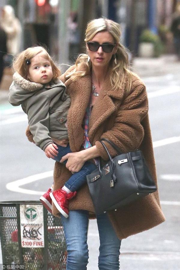 当地时间2019年1月7日,纽约,妮基·希尔顿(Nicky Hilton)抱娃现身街头。