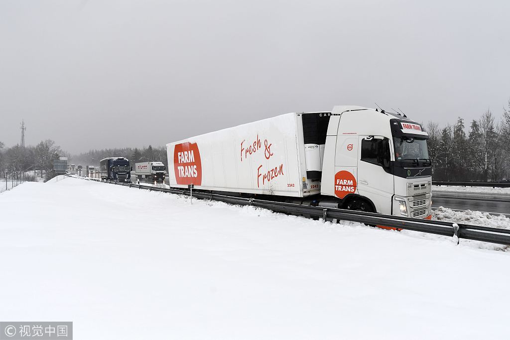 德国遭暴雪袭击 车辆出行受阻交通事故频发