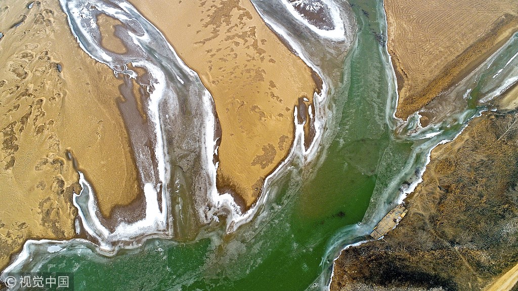 2019年1月5日,山西运城,航拍的冬日黄河景色。