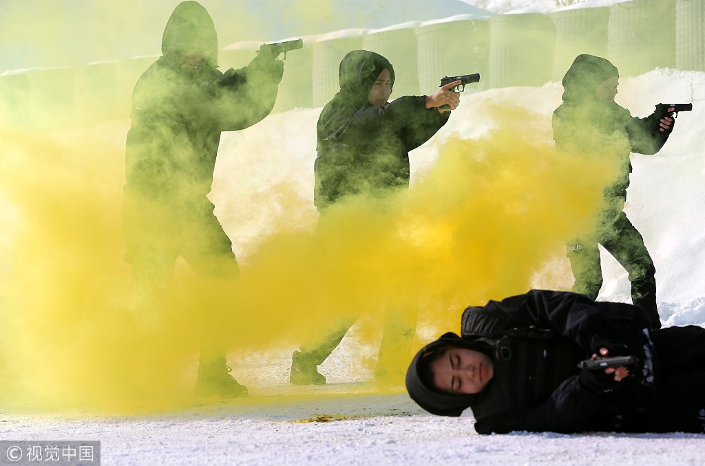 阿富汗女警在土耳其受训 持枪瞄准动作帅气