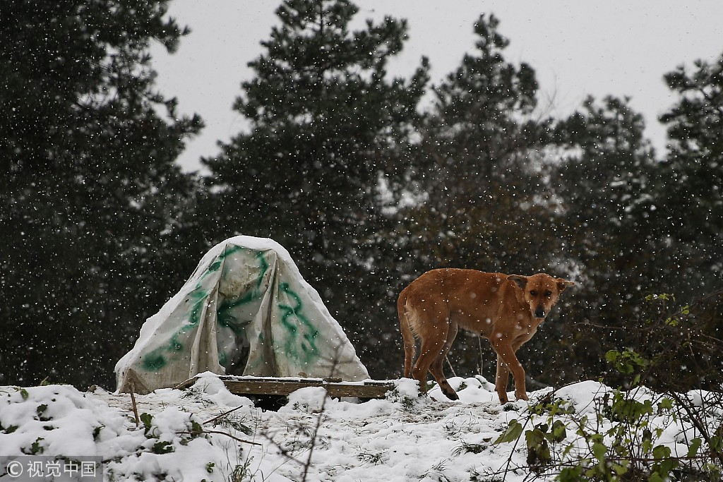 雪中送炭!土耳其兽医服务人员为流浪狗分发食物
