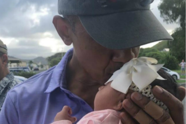 海外网1月10日电 近日,美国前总统奥巴马在夏威夷打高尔夫球,休息期间抱了一名7周大的婴儿,并亲吻其额头,女婴的父母觉得幸运极了,晒图“炫耀”,还幽默地称“不会给女儿洗额头”。