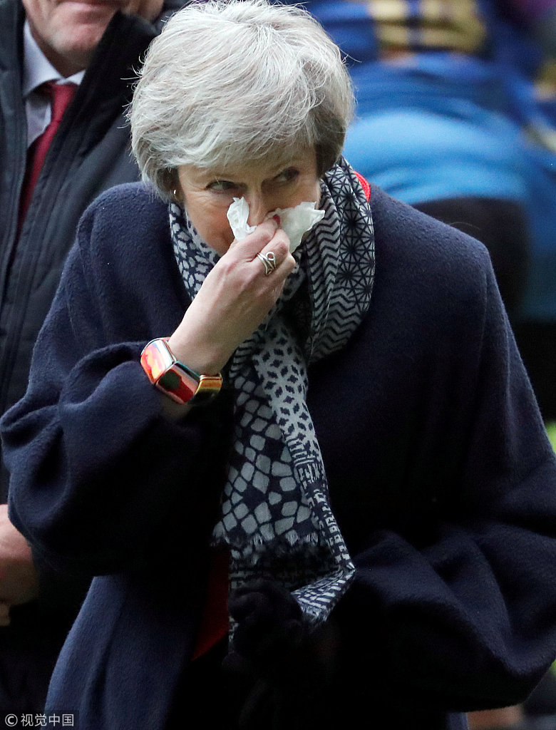 英日两国首相同行 特蕾莎·梅冻出鼻涕