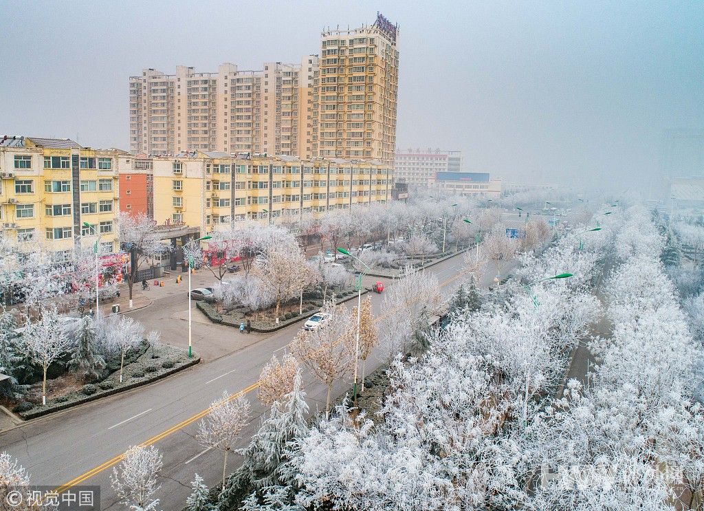 山西运城现雾凇美景 城市变身冰雪梦幻王国