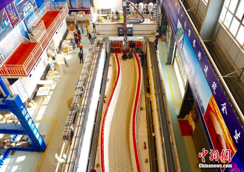 1月11日,国内第一座运用3D打印技术一次成型的景观桥在上海桃浦中央绿地落成。据悉,该桥长15.25米,宽3.8米,高1.2米,由高分子材料仅用35天制作完成,使用寿命达30年。资料图为负责该桥梁建造的龙门架复合3D打印机。中新社发 申海 摄