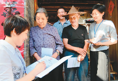 2018年5月8日,福建省宁德市古田县纪检监察干部向浣下村村民了解惠农专项资金的使用情况。 新华社记者 魏培全摄